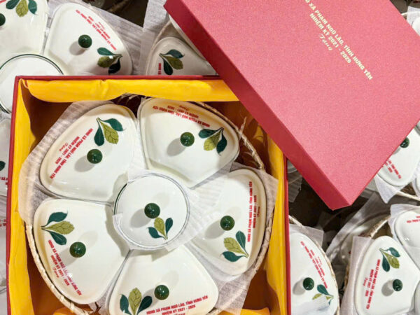 Bên cạnh kho mẫu mã đa dạng có sẵn, Gốm Sứ Hoàng Gia nhận tư vấn và thiết kế mẫu khay đựng mứt tết độc quyền theo yêu cầu của doanh nghiệp. Từ việc phối màu men, kẻ chỉ vàng kim đến thiết kế hộp quà tặng (boxset) đồng bộ, tất cả tạo nên một món quà khay mứt tết sứ in logo hoàn hảo, thể hiện sự chỉn chu và vị thế của người tặng. Đây chắc chắn là lựa chọn quà tặng Tết tối ưu, vừa tiết kiệm chi phí vừa mang lại hiệu quả truyền thông cao.