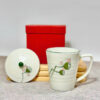 Ly sứ quà tặng men kem vẽ hoa đào màu vàng